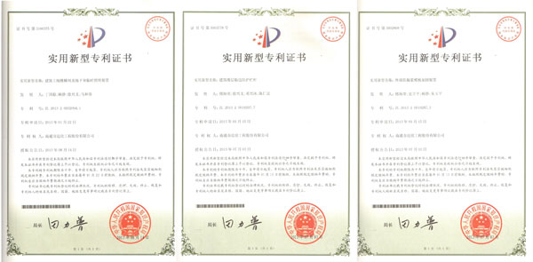 第四工程公司申報的《建筑工地樓梯間及地下室臨時照明裝置》、《建筑樓層臨邊防護欄桿》、《外墻防漏漿模板加固裝置》技術(shù)的成果,日前獲得國家知識產(chǎn)權(quán)局頒發(fā)的實用型專利。