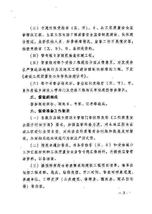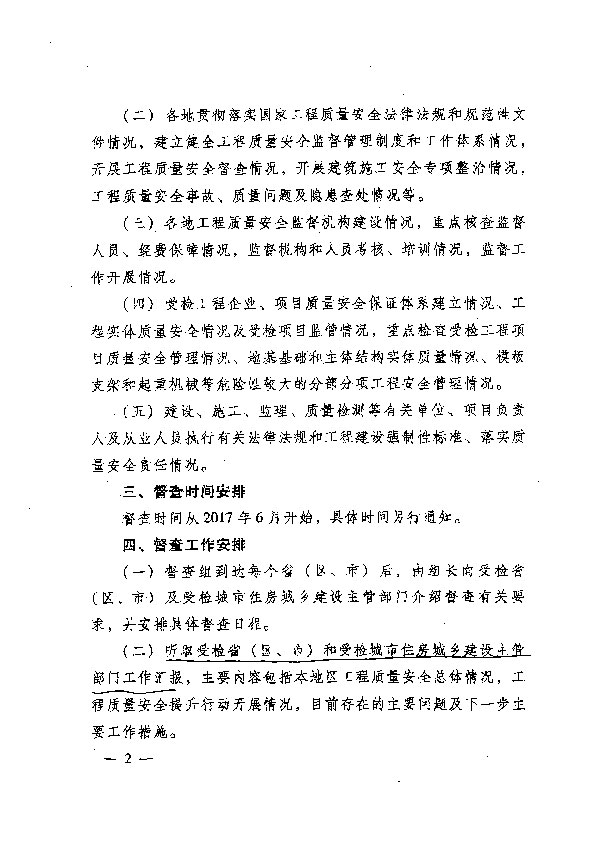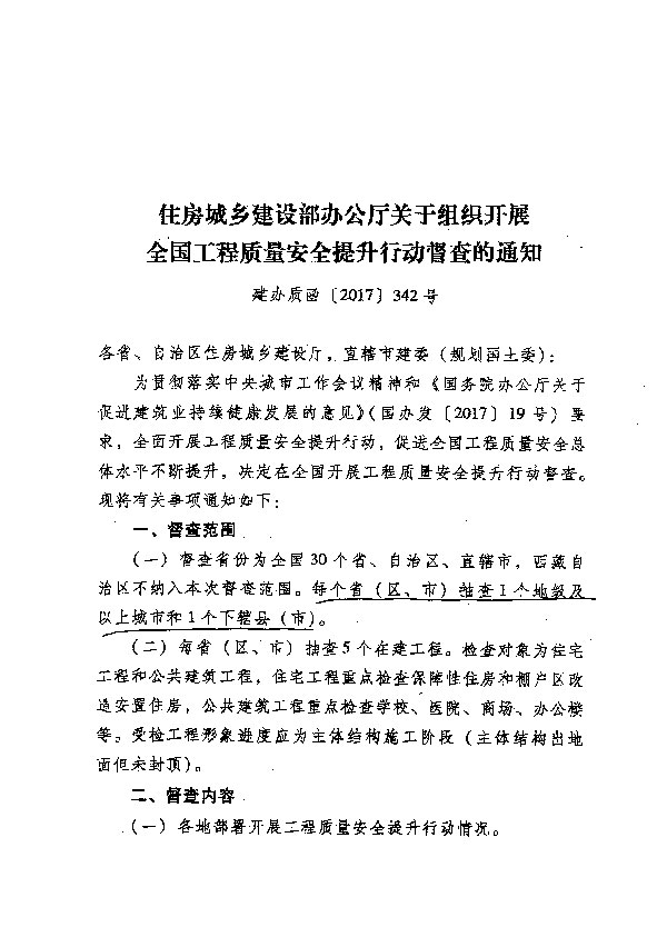關(guān)于組織開(kāi)展全國(guó)工程質(zhì)量安全提升行動(dòng)督查的通知