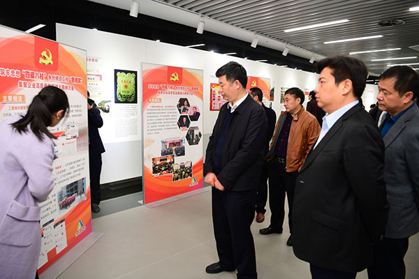 在達(dá)欣集團(tuán)企業(yè)展示中心,嚴(yán)長江一行參觀了“筑牢思想‘四梁八柱’ 爭創(chuàng)燎原工程‘魯班獎’”主題展板,詳細(xì)了解了企業(yè)黨員冬訓(xùn)工作開展情況,對黨建工作的創(chuàng)新做法給予了肯定。集團(tuán)董事長、黨委副書記馬和軍陪同參觀。