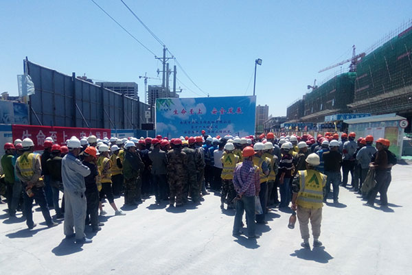 儀式上,君豪輕紡城項目部項目經(jīng)理雷遠(yuǎn)明宣讀了《“安全生產(chǎn)月” 、“安全生產(chǎn)萬里行”活動》的倡議書和安排部署;生產(chǎn)經(jīng)理盛慶國針對當(dāng)前安全形勢、施工現(xiàn)場的安全隱患結(jié)合事故案例進(jìn)行了教育。最后,工程公司經(jīng)理丁國東就“安全生產(chǎn)月”和“安全生產(chǎn)萬里行”活動提出具體要求,要求項目部全體人員迅速行動起來,積極抓好安全生產(chǎn)的各項工作,堅決杜絕生產(chǎn)安全事故的發(fā)生,確保全年安全生產(chǎn)目標(biāo)的順利完成。
