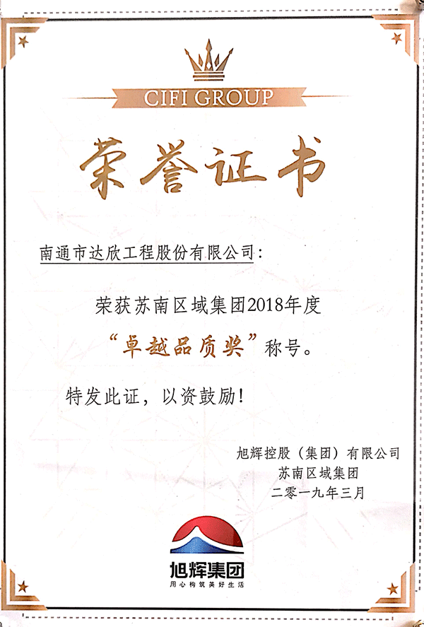 品質(zhì)為先 達欣獲旭輝2018卓越品質(zhì)獎