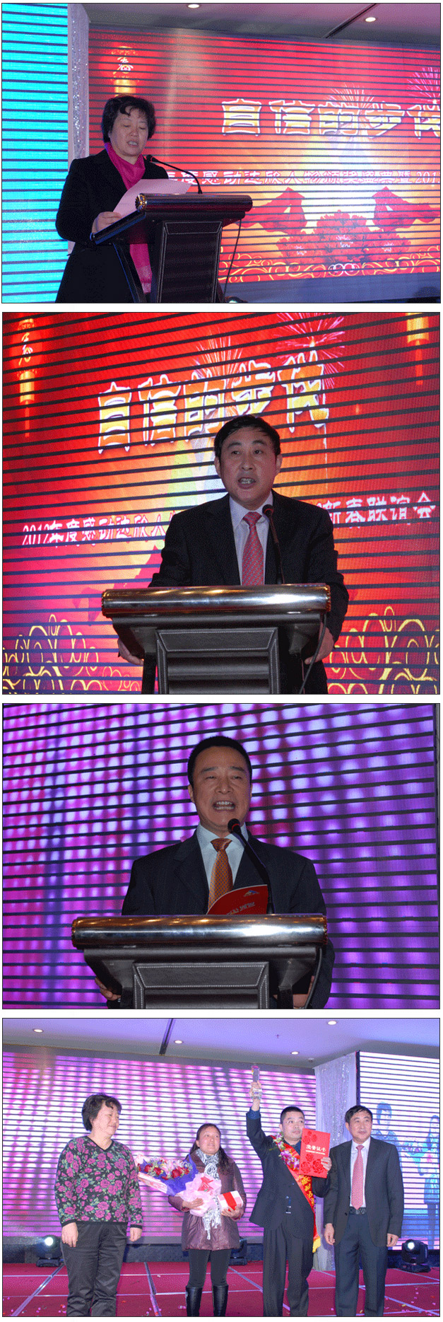 在喜慶樂典和主持人高亢激昂的開場后,公司董事長馬和軍進行了致辭答謝。他回顧了公司一年來所取得的輝煌成績,感謝社會各界及公司全體同志們的努力,并對公司的未來發(fā)展之路描繪了藍圖;接著,縣委書記單曉鳴發(fā)表重要講話,她指出,建筑業(yè)是我縣的傳統(tǒng)產業(yè),也是一個富民強勢產業(yè),還是我縣財政收入的重要來源之一,作為縣內的骨干企業(yè),達欣公司步入了公司歷史以來發(fā)展最快、榮譽最高、分配最多、貢獻最大的時期,她希望公司要加快發(fā)展,高起點定位,突出重點,好中求快,實現(xiàn)達欣新飛躍。