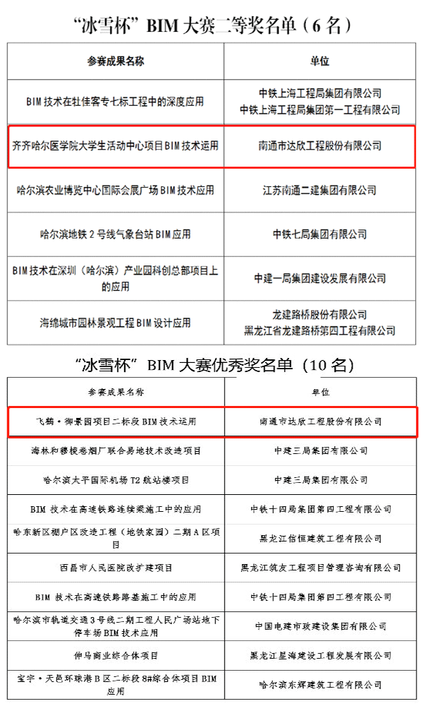 黑龍江省第一屆“冰雪杯”建設(shè)工程BIM大賽共收到30項(xiàng)成果,其內(nèi)容涵蓋BIM應(yīng)用的各個(gè)階段,通過(guò)初賽《飛鶴·御景園項(xiàng)目二標(biāo)段工程BIM技術(shù)應(yīng)用》榮獲“冰雪杯”BIM大賽優(yōu)秀獎(jiǎng),《齊齊哈爾醫(yī)學(xué)院大學(xué)生活動(dòng)中心BIM技術(shù)應(yīng)用》進(jìn)入決賽并通過(guò)視頻直播答辯榮獲大賽二等獎(jiǎng)。