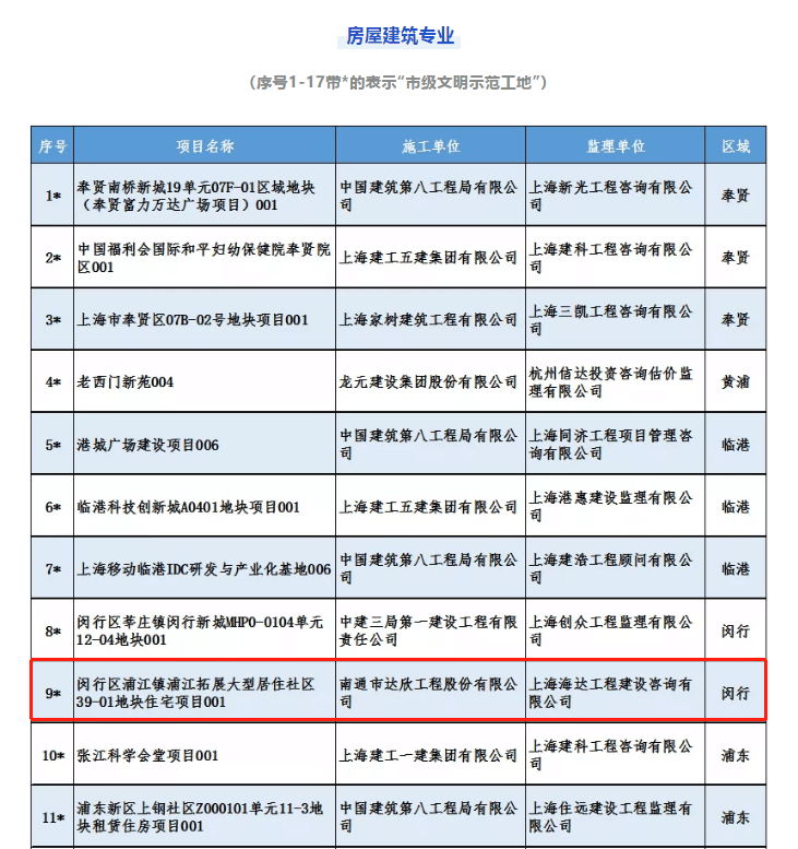 近日,上海住房城鄉(xiāng)建設(shè)管理委員會(huì)滬建質(zhì)安〔2021〕258號(hào)文件公布了《關(guān)于2020年度上海市文明工地的通知》。第一工程公司上海閔行區(qū)浦江鎮(zhèn)39-01地塊住宅項(xiàng)目被評(píng)為2020年度上海市文明示范工地。