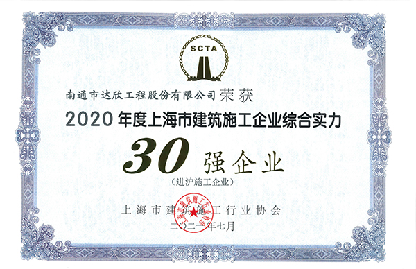 近日,2020年度上海市建筑業(yè)誠信企業(yè)、進(jìn)滬綜合實(shí)力排名揭曉,第一工程公司連續(xù)13年榮獲“上海市建筑施工誠信企業(yè)”殊榮。另外,再次獲得“上海建筑業(yè)進(jìn)滬企業(yè)綜合實(shí)力30強(qiáng)企業(yè)”稱號(hào)。