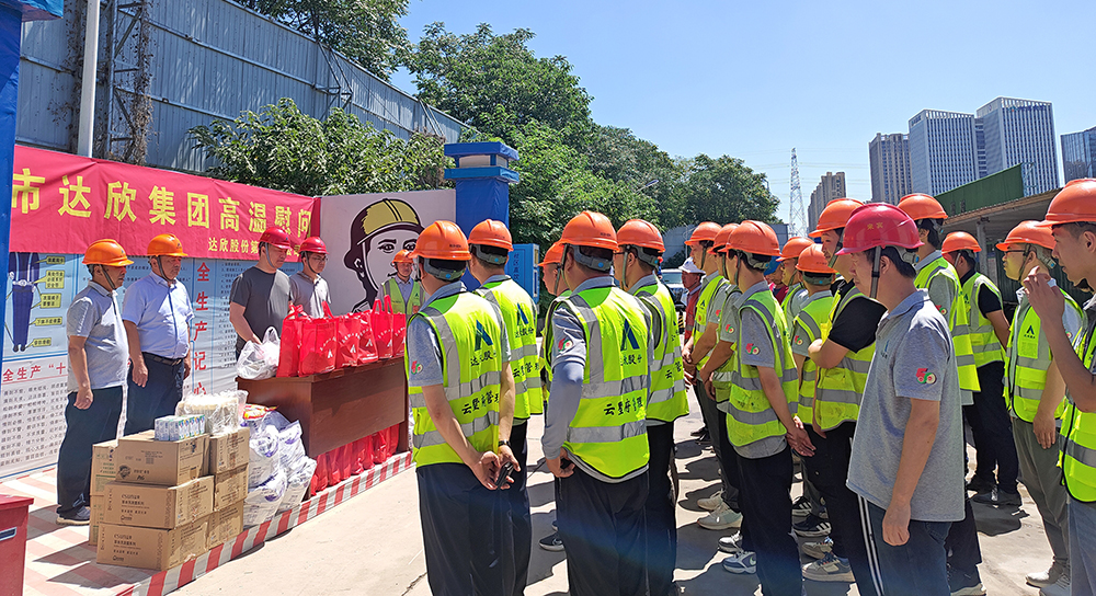 烈日炎炎,熱浪滾燙,持續(xù)的高溫天氣拉開了項目“戰(zhàn)高溫,斗酷暑,保安全,保質(zhì)量,保進(jìn)度”的進(jìn)程,一線員工們立足崗位,奮戰(zhàn)高溫。第十工程公司總經(jīng)理曹陸、副總經(jīng)理曹伍群親自為云墅府項目奮斗在一線的職工們,送上來自集團工會的高溫清涼物資和慰問。集團工會委員徐祝軍、時紅翔等參加活動。