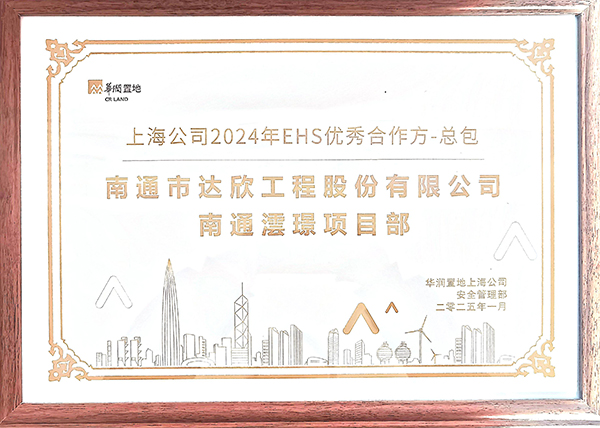 公司自與華潤置地合作以來,憑借專業(yè)的能力、優(yōu)質的服務和高效的協(xié)作,在眾多合作方中脫穎而出,榮獲華潤置地上海公司“2024年EHS優(yōu)秀合作方-總包”稱號。