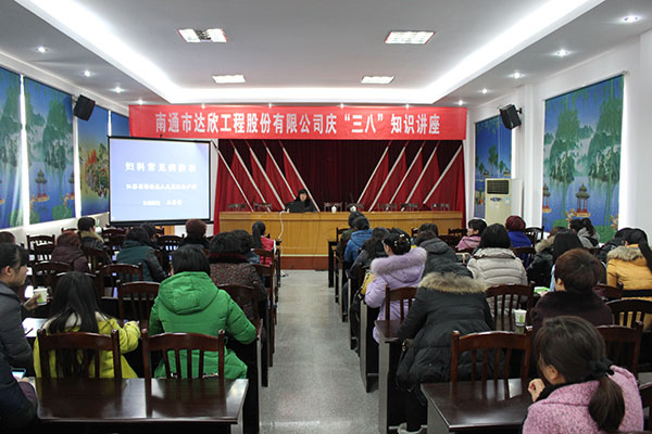 為提升女職工對(duì)婦女健康知識(shí)的認(rèn)識(shí),增長(zhǎng)健康保健常識(shí),公司工會(huì)于3月7日下午邀請(qǐng)了海安縣人民醫(yī)院婦產(chǎn)科專家王秀美主任醫(yī)師,來公司四樓會(huì)議室對(duì)婦科日常知識(shí)進(jìn)行了專題講座。參加聆聽知識(shí)講座有公司總部全體女員工、工程公司管理崗位的女職工以及公司領(lǐng)導(dǎo)家屬代表等。