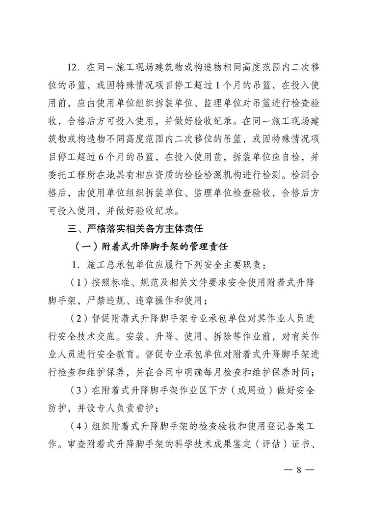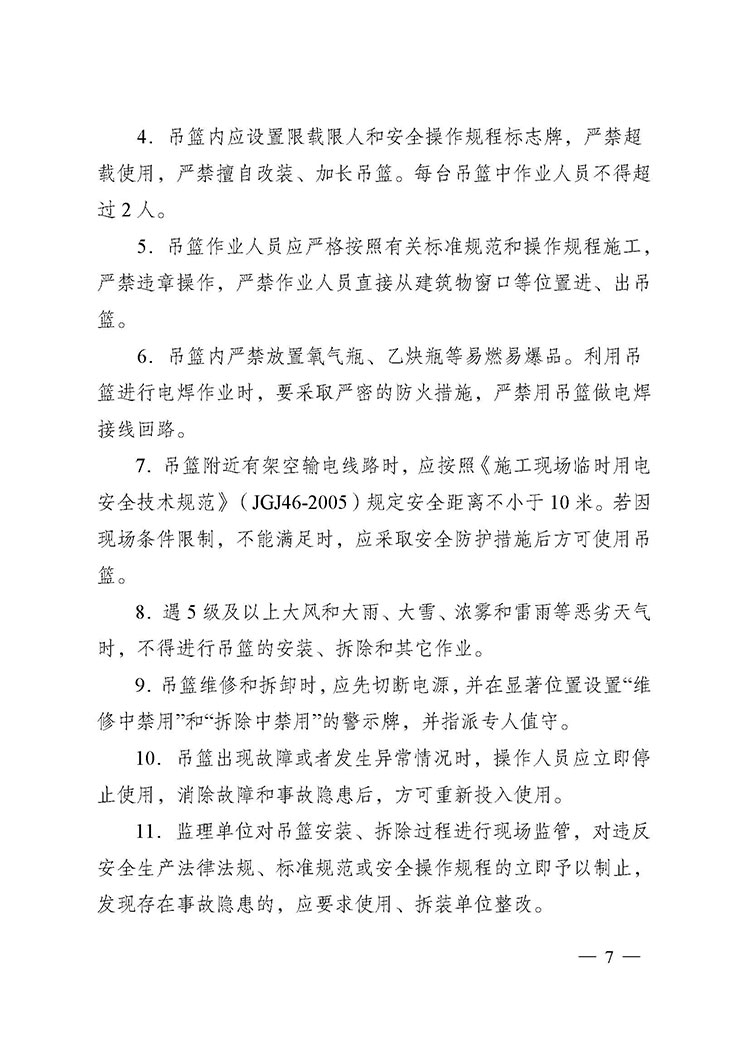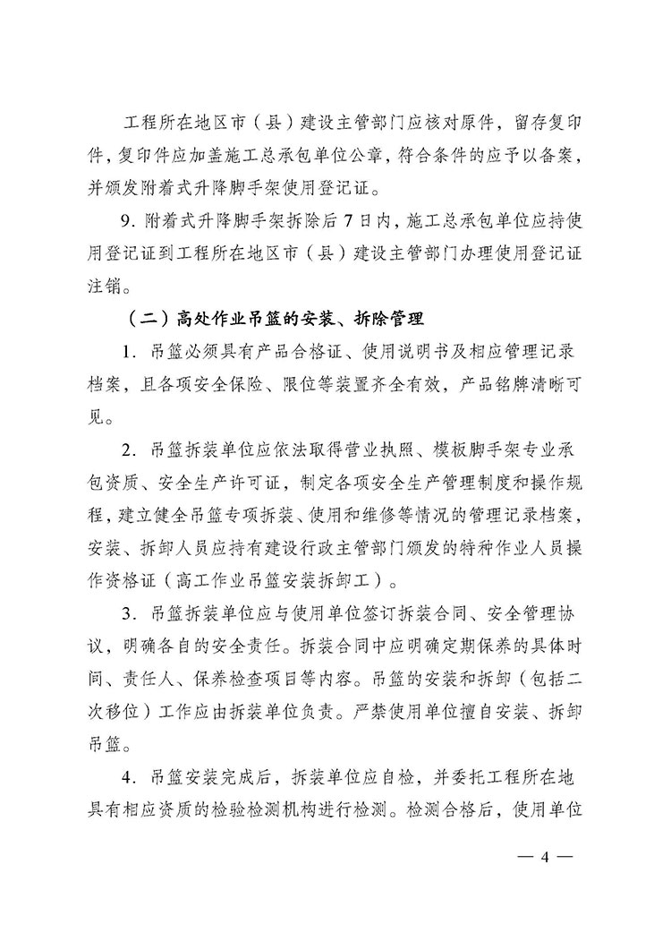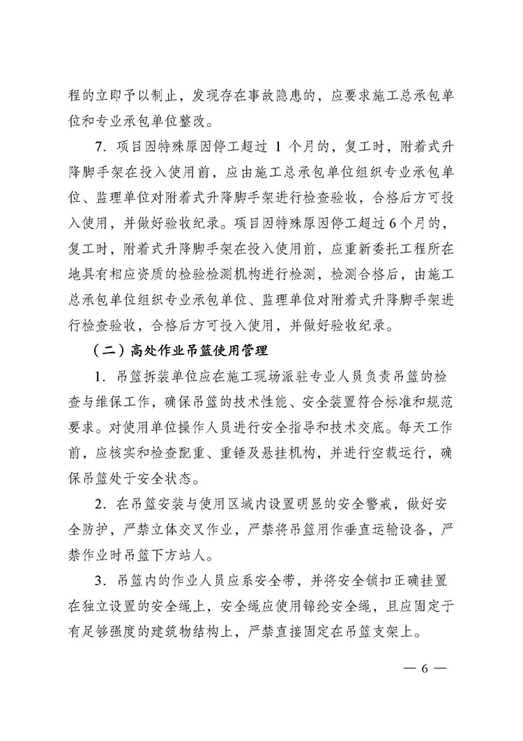 關于進一步加強附著式升降腳手架和高處作業(yè)吊籃安全管理的通知