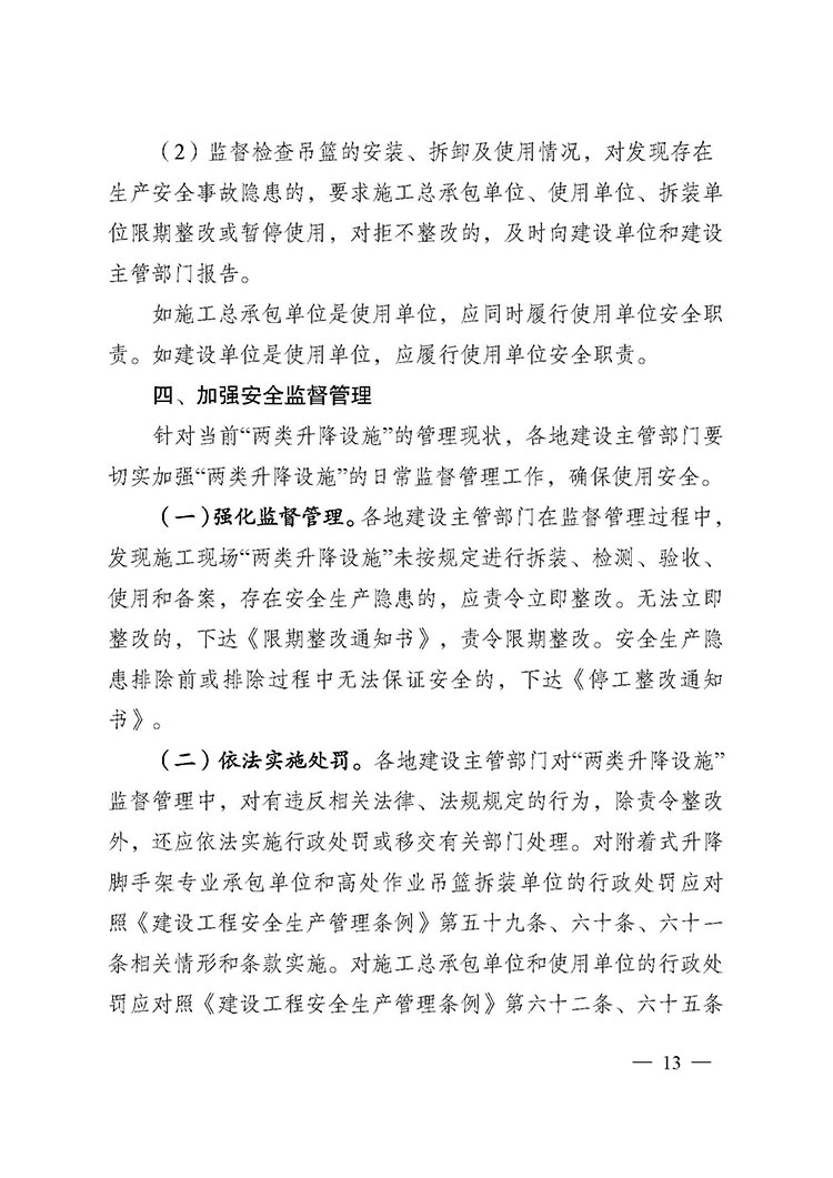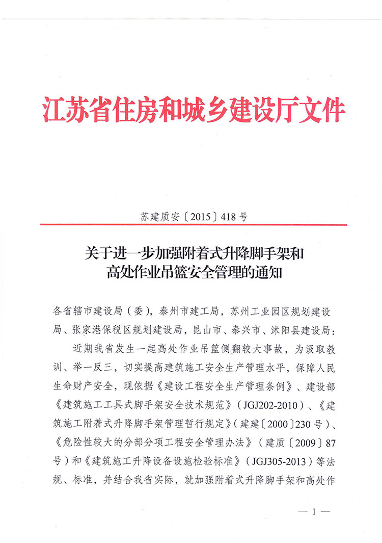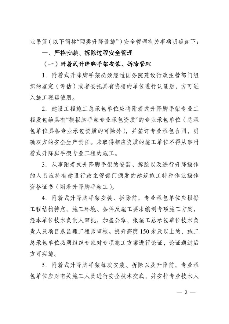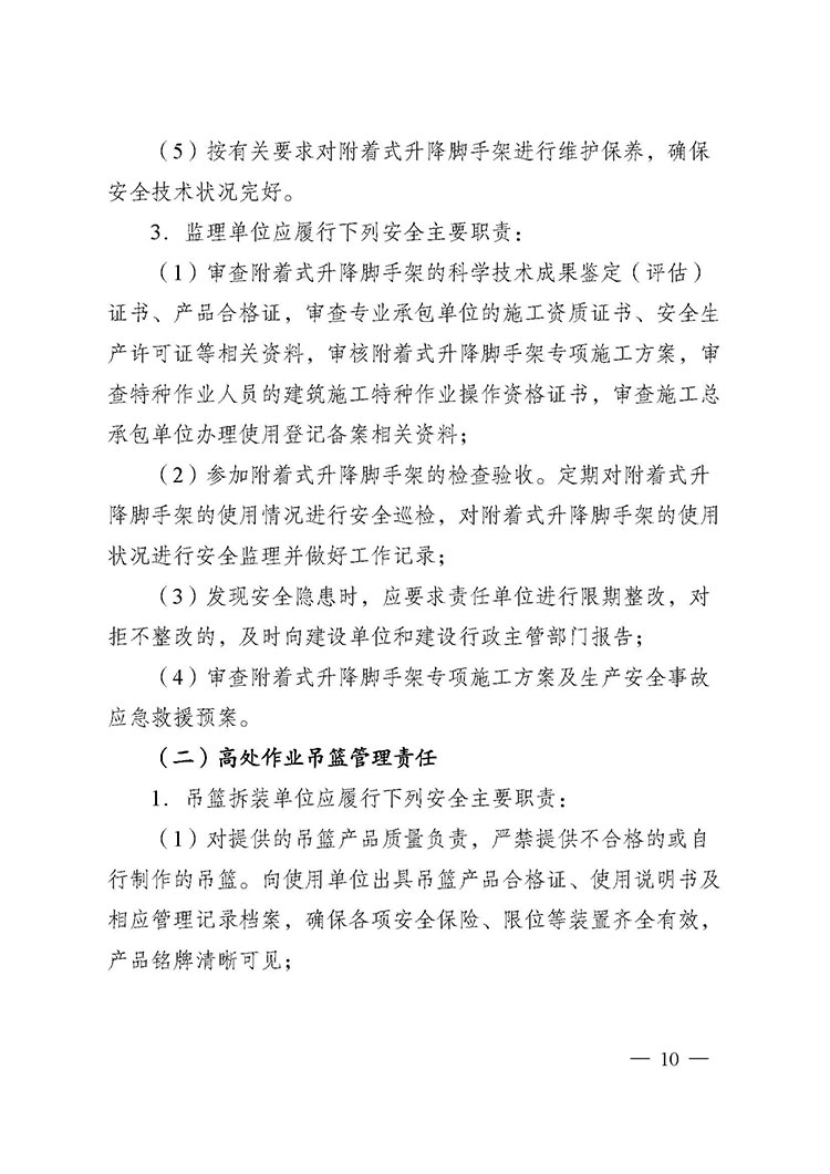 關于進一步加強附著式升降腳手架和高處作業(yè)吊籃安全管理的通知