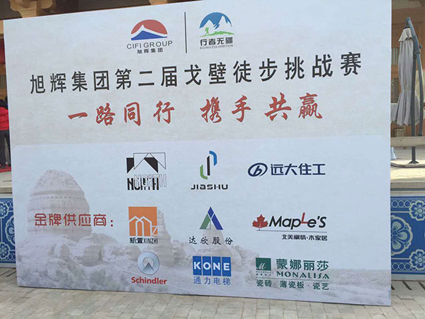 金秋十月,在舉國同慶的日子里,9月30日至10月4日旭輝集團(tuán)組織了第二屆戈壁徒步挑戰(zhàn)賽活動(dòng),由16支代表隊(duì)160余人組成,第八工程公司總經(jīng)理李向東同志作為金牌供應(yīng)商代表有幸參加了此次活動(dòng)。