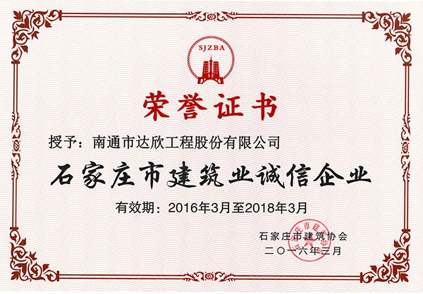 第四工程公司獲得石市建筑業(yè)先進企業(yè)