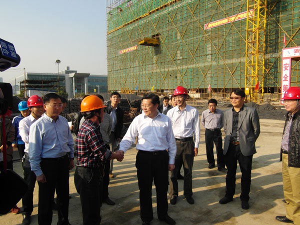 在項(xiàng)目現(xiàn)場(chǎng),周書(shū)記對(duì)工程質(zhì)量和現(xiàn)場(chǎng)管理進(jìn)行了仔細(xì)察看,對(duì)工程進(jìn)度、質(zhì)量、安全文明施工給予了充分肯定。周謙書(shū)記與項(xiàng)目經(jīng)理親切交流,并再三叮囑:一要抓好文明施工,確保安全生產(chǎn);二要抓好工程質(zhì)量,強(qiáng)化過(guò)程管理;三要抓好工程進(jìn)度,嚴(yán)格履行合同。